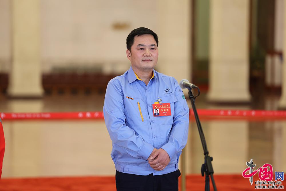 10月22日,二十大“黨代表通道”第二場(chǎng)采訪(fǎng)活動(dòng)在人民大會(huì )堂舉辦。圖為中國兵器西北工業(yè)集團研究院試制分廠(chǎng)鉗工高級技師張新停。中國網(wǎng)記者 董寧 攝