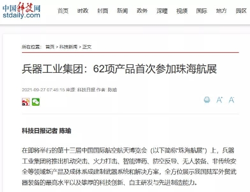 兵器工業(yè)集團參展第十三屆中國航展受到社會(huì )廣泛關(guān)注