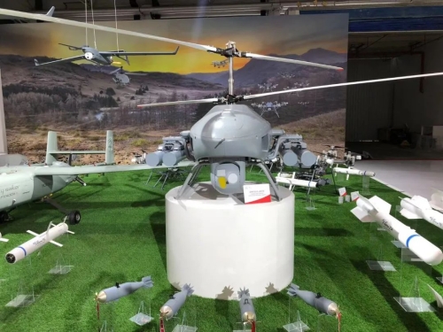 無(wú)人機營(yíng),主力裝備由金雕500A無(wú)人直升機、金雕150B蜂群無(wú)人機等構成。該營(yíng)聚焦陸軍無(wú)人機和有人無(wú)人協(xié)同作戰應用,在展示無(wú)人機裝備領(lǐng)域最新發(fā)展成果的同時(shí),還展示了無(wú)人機與地面裝備相互配合、相互補充、協(xié)同作戰的新質(zhì)實(shí)戰能力。同時(shí)展出的針對不同平臺、配以不同制導模式和戰斗部的空地導彈、航空炸彈、巡飛彈等系列化產(chǎn)品,將有力提升無(wú)人機裝備的作戰能力。