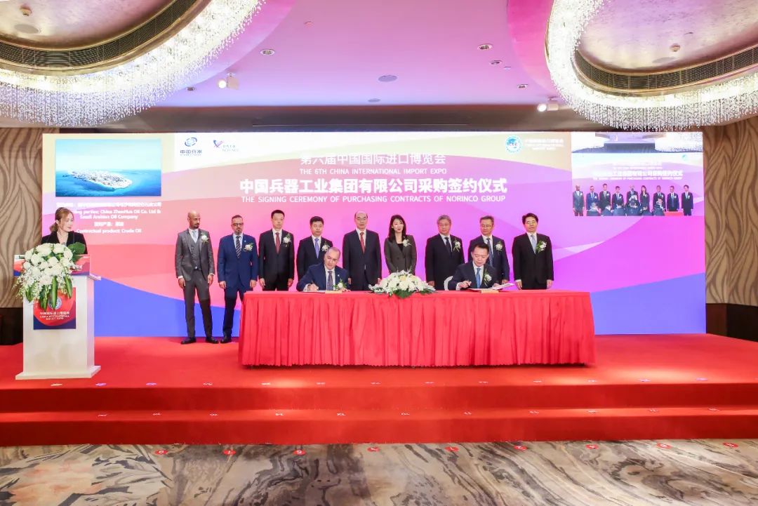 11月6日,中國兵器工業(yè)集團有限公司在上海隆重舉辦第六屆中國國際進(jìn)口博覽會(huì )專(zhuān)場(chǎng)采購簽約儀式。兵器工業(yè)集團黨組成員、副總經(jīng)理植玉林,商務(wù)部有關(guān)司局領(lǐng)導,來(lái)自蒙古、盧森堡、法國、智利、瑞士、新加坡、韓國、美國、德國、沙特、伊拉克等國知名企業(yè)簽約代表,總部相關(guān)部門(mén)、相關(guān)子集團和直管單位負責人共150多人出席簽約儀式。